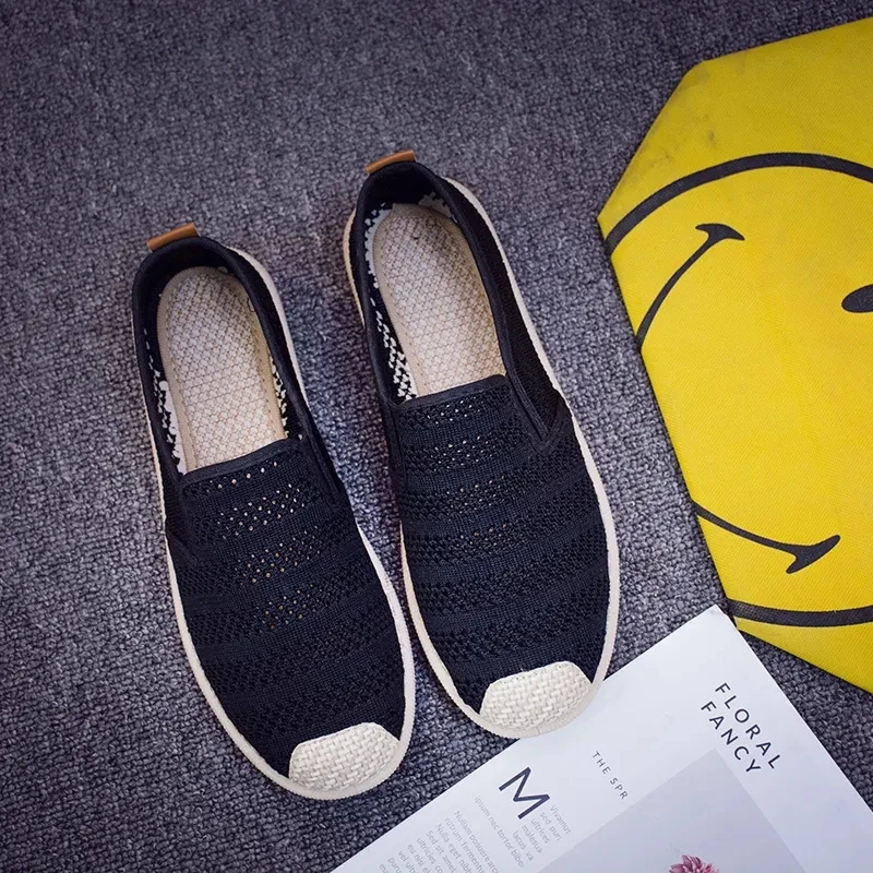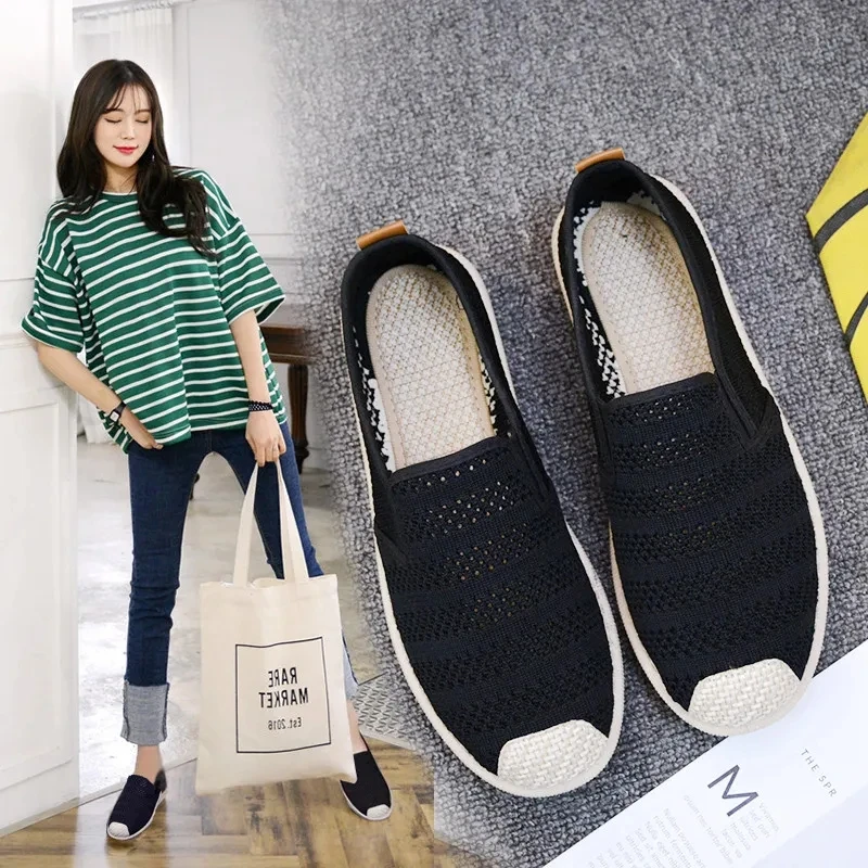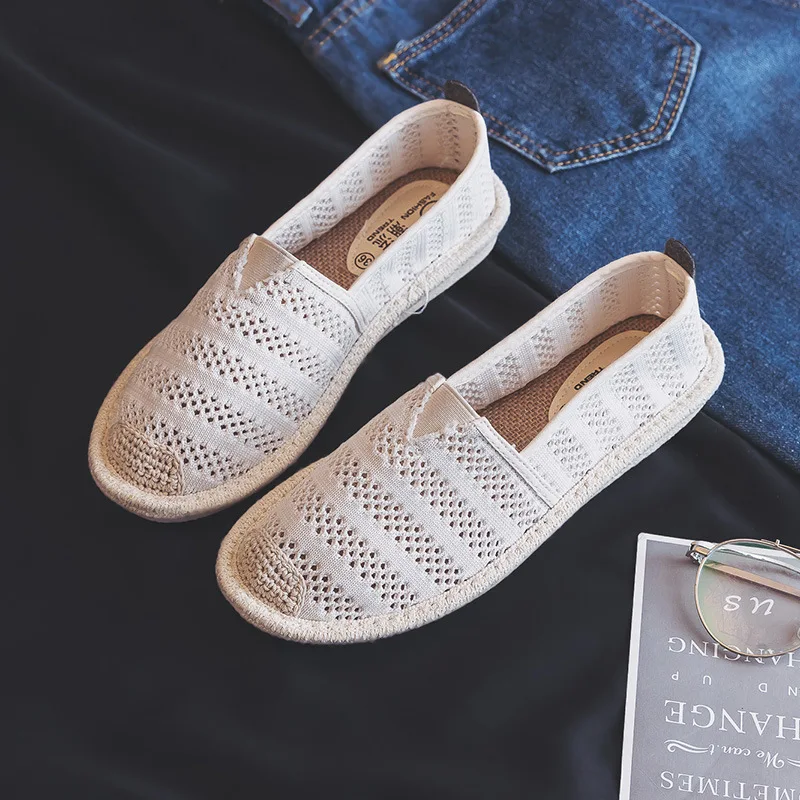 2023 Ladies Casual Comfort Ripped Slip on Lazy Shoes Female Womens Flat Slip on Canvas Summer Strap Loafers Straw Espadrilles